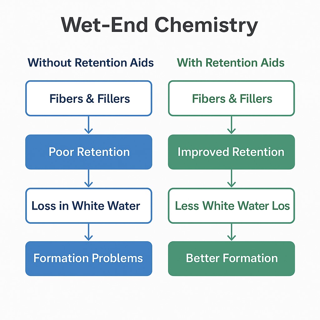 The Indian paper industry is at a crucial juncture. With increasing environmental regulations, rising input costs, and demand for higher-quality grades, manufacturers are constantly seeking process enhancements. One powerful tool that’s transforming the way paper is made in India is retention aids. Retention aids are chemicals added to the wet end of the paper machine to help fine fibers, fillers, and other materials bind to the sheet—rather than being lost in the water loop. Let’s explore how these solutions dramatically improve paper quality and reduce wastage, especially in Indian conditions